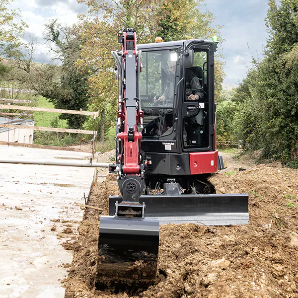 Il miniescavatore Yanmar Vio38-7 ha dimensioni tali che consentono a questo miniescavatore giro-sagoma di ottimizzare le prestazioni negli spazi ristretti.